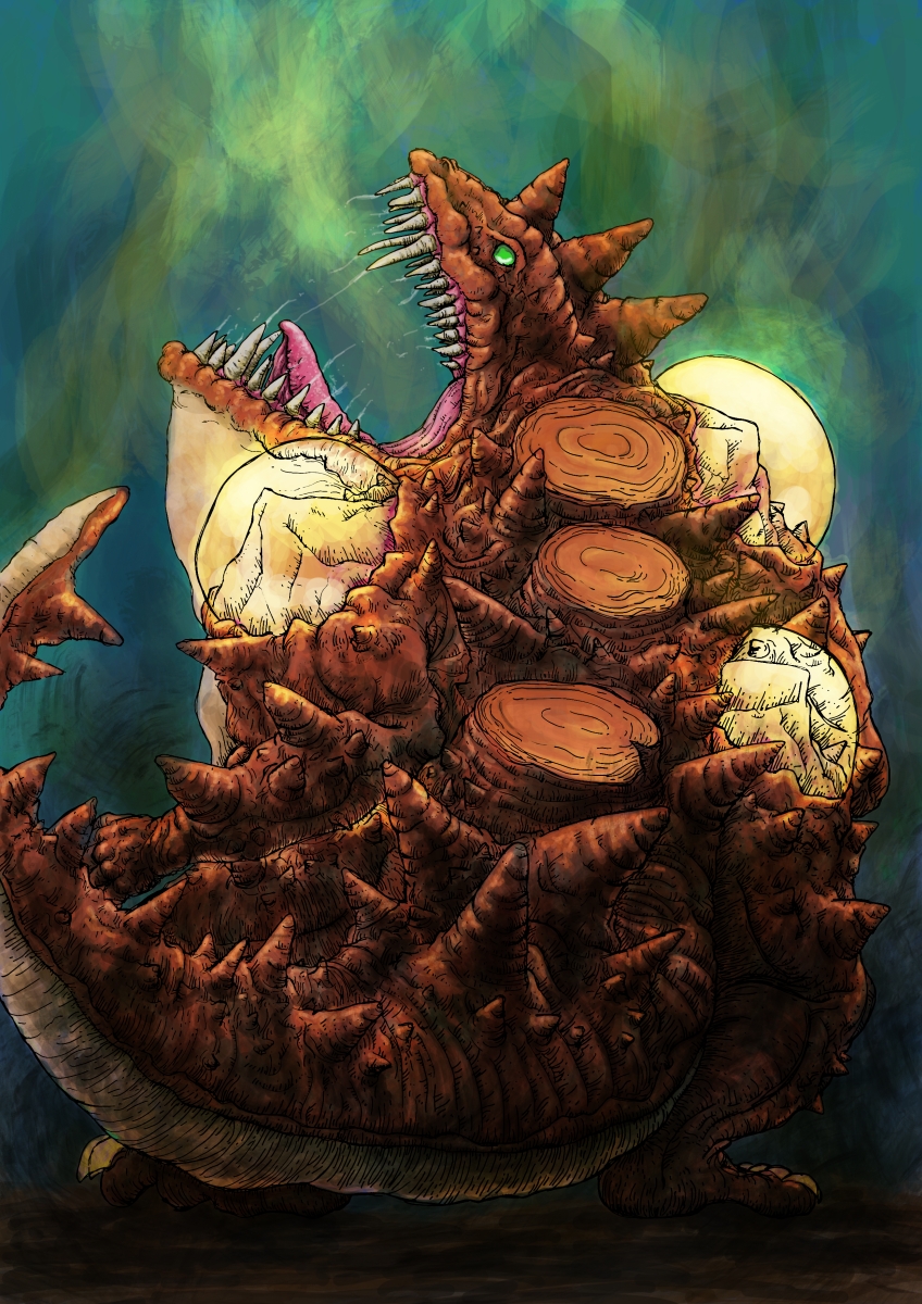 描くたびに形が変わるドテドン。これも竜と春の樹と同じ日にライブドローイングしたものにProcreateで塗った。