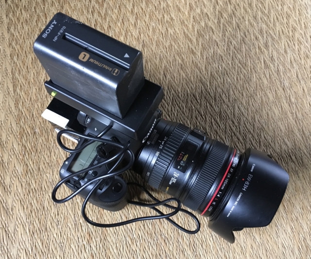 SONYのF970 NP-FシリーズをCANON EOSシリーズで使うためのアダプター。全く持って問題なく使えている。カメラ側で電源を入れていなくてもアダプターとバッテリーだけで通電しているため、使わないときはバッテリーを外しておいた方がいいね。