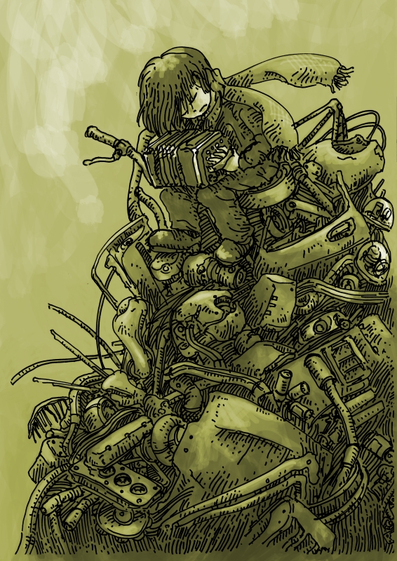 じっさいはこのようなモノトーンでは塗っておらず、GIMPでモノトーンに加工している。なんとなくGIMPを使っているが、出来ることは確かにPhotoshopとあんまり変わらない。使ってる機能が基本的なものという事もあるが。使い勝手に関しては毎度慣れても使いづらいね。詰めのところで直観的でないと思う。