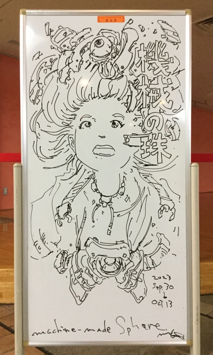 会場が駅ビルであっても集客にハンデのある場所で、さらに用事で来る方々の年齢層が高めなので一見様には相当辛いんじゃないかと思うのは稀有でした。かといってはまっているわけでもないと思います。簡単に言って漫画絵ですからね、貸しギャラリーでも嫌がられるので、自己満足の展示で納得するしかないとも思ったり。そういうのはよくないですね。きちんと考えて描けば見てもらえますね。じゃぁ、何がどうなのと言えば、急に商売っぽい言い方になるけど顧客対象は想定でしかなくて、決め打ちではないってこと。あくまでも製作上の基準と考えるくらいがいいんじゃないかと思いました。まあぼんで展覧会やったときも老若男女まんべんなく見てもらえましたが、あえて言うなら子ども向けに描いていて、大人に向けてはいないのです。とはいえ、子どもに向けた制作物は大体大人でも見やすいし、物語や作品世界の構造をバランス見ながら複雑化すれば大体どなたにも楽しんでもらえる作りになるのは想定していました。(というか、日本のアニメがだいたいそういう作りになっていますよね。)それと、見てもらう人たちにある程度委ねる部分を作っておくのも大切かと思います。作品世界は限定されるが、見る人が自由に想像できそうに思える余裕を意図的に作るようなことです。てなことを考えつつ、紹介文を書ききってしまったのは良くなかったのが反省点です。人は絵を見て想像する前に文章で納得してしまうので上手いことまとめてしまうと文章に引きずられてしまうのでした。