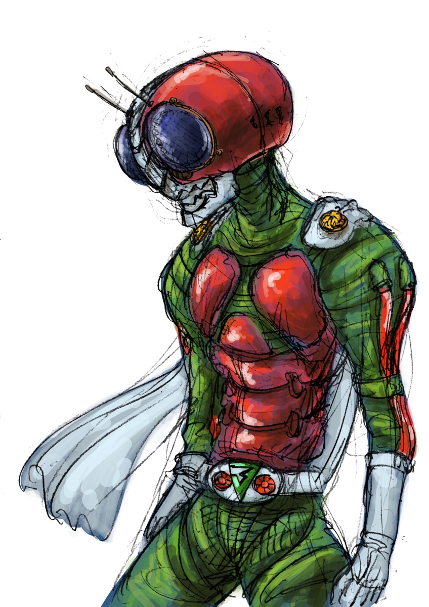 Picture 戦え正義の 投稿者: murbo 投稿日: 2019/06/122020/05/03 なんとなくV3を描こうとして、わーってなったやつ。わーってなんだよ。腕にパイプを三本つけたい、目をできるだけトンボみたいにしたい、ベルトのVと3を格好つけたい、胸のかたちは忘れたので自分で考えたのであって独自なものにしたかったわけじゃない。とかそんな感じで腕のパイプがこの位置だと二本しか見えないことに描いてから気が付きました。本物のトンボのように体を細くしようとしたら、気持ち悪かったので普通にしました。とか休憩に描いたのでした。 鉛筆にProcreateで彩色。 関連記事: kamen rider W kamen rider OOO ザクの日なので描いてはみたものの。
