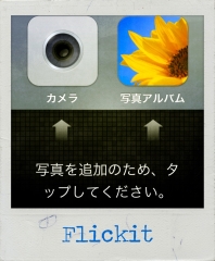 camera・iOS app Flickitを使っている。 投稿者: murbo 投稿日: 2013/02/242017/01/21 かなり古いアプリになると思うが、単一機能で動作が軽快なので常用している。起動は遅いけどね。でもこれはハードウェアに依存した問題かもしれない。今なら写真もビデオもTwitterやfacebookへ直接アップロードできるようになっているけど、写真については一定のものに関してFlickrに集約することにしているので、Flickrにアップしてからツイートなどをしているのだ。多機能なPro版もあるけどアップロードさえ出来ればいいので、これで問題ないです。 関連記事: FiLMiC PROを使っているような、いないような。 Movie360を使ってみたが… iMajiCam Pro