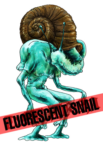 FLUORECENT SNAILは全身が蛍光物質で作られている。背中に背負った殻に全身を格納でき、そのまま移動することも可能。実態を維持するために大量の水を必要になり各地の水源に出没する。人型への変身機能は失われているものの、人だった頃の自我は強く残っている為にあまり攻撃的な行動に出ることは無い。しかし、深夜、水を求めて浄水場に現れたとき、何者かによる火災に巻き込まれ、誰にも気付かれないまま消滅した。