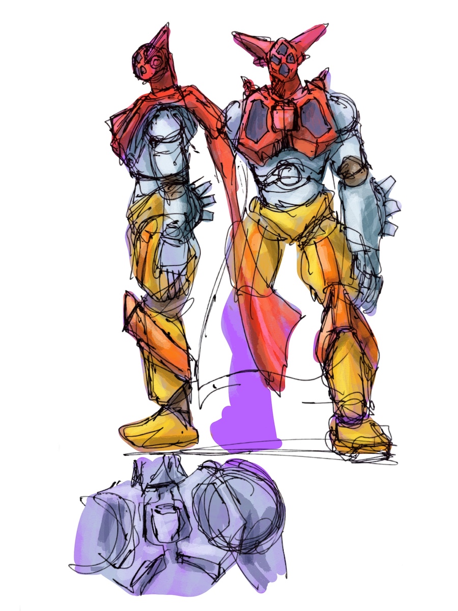 Picture getter one. 投稿者: murbo 投稿日: 2024/05/212024/05/21 昔の食玩のゲッターワンを見つけたので、やたら長い足などを修正しようと思って自由に絵を描いてみたが、このように作るには元の形がなくなってしまうので、こうではなく元の形のバランスを見ながら修正した方が良さそうだとわかりました。 ゲッター1 4年くらい前にも同じようなことを思っていたようです。はよ作らないとな。 関連記事: ゲッター1 DRACLAN200704 ダンボールにスパパパぱっと描く。