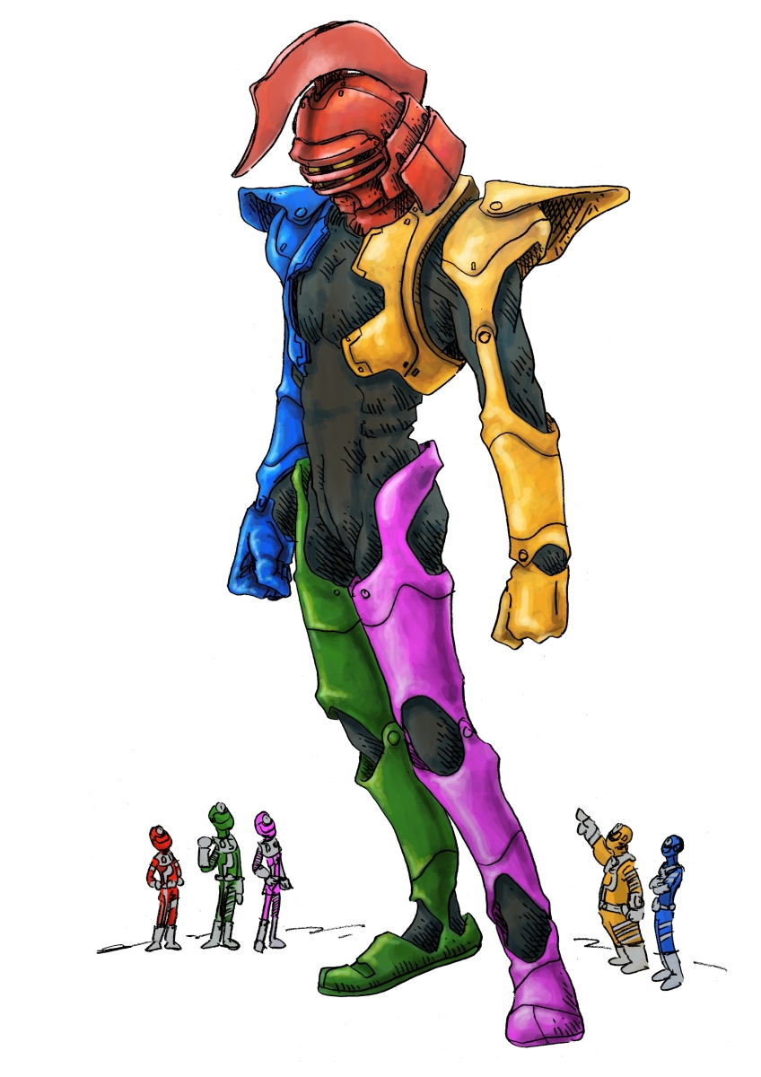 宇宙キッド対ドテドン GIGA BYTE ROBO 投稿者: murbo 投稿日: 2018/10/302018/11/09 バイトメン五人が合体して巨大化したスーパーロボ。としてふわっと描いてみたら全くロボ感が無いのでそのうちロボ感を出したのを描くんじゃないかな。当初、ギガバイトマンとしようとしていたが、そんなことだからメカニックな感じを出せていないんだね。そしてギガバイトなんとかだとマザーボードなどのメーカーと同じ名前になってしまうのでそもそも考え直さないといけないな。 procreate(iOSアプリ)でドローイングと着色。 関連記事: GIGA BYTE ROBO 181102 BYTE-MEN and enemys GIGA BYTE ROBO 181106
