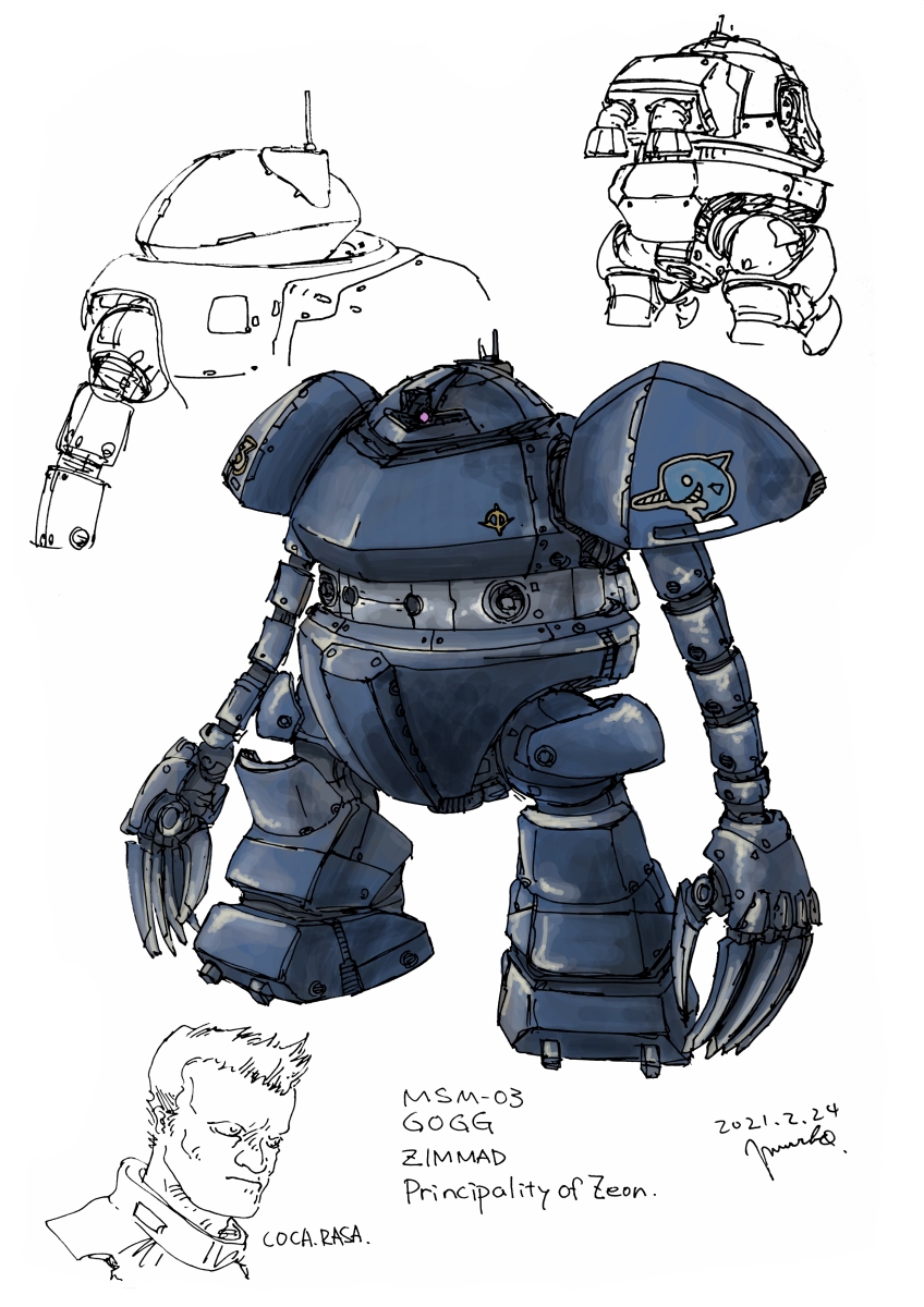 Picture gogg 投稿者: murbo 投稿日: 2021/03/022021/04/14 仕事の待ち時間に描いています。潜水艦みたいにならんからなと思いつつ。プラモデルを作りたい気持ちで描いています。 紙にボールペンのドローイングにProcreateで彩色。 関連記事: gogg G-FIGHTER DOM210414