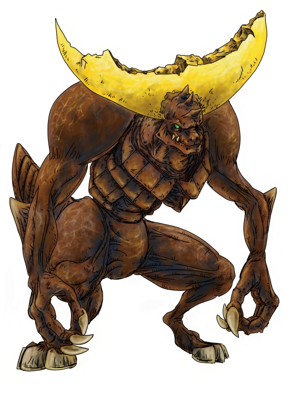 で、おっさんが改めて考えたのはどちらかというと人型のような怪獣で、頭に巨大な金の円盤をくっつけている。しかし、何らかの事情で三日月のように千切れている。この怪獣ゴズノの最大の武器は三日月形の金の円盤と体形とは相反する俊敏さだ。相反すると思われるが、ラグビー選手の体系と、機動力を思うとそんなに反していないな。まぁ、ああいう感じで体当たりされるとなかなかの攻撃力だ。その他にはリーチを活かしたパンチなど。全長17m、体重12t。名駅辺りに出現する。迎撃ロボットは体当たりを防御するために両腕を破損。周囲の電力をすべて利用して出力を上げた電子光線砲で焼殺した。