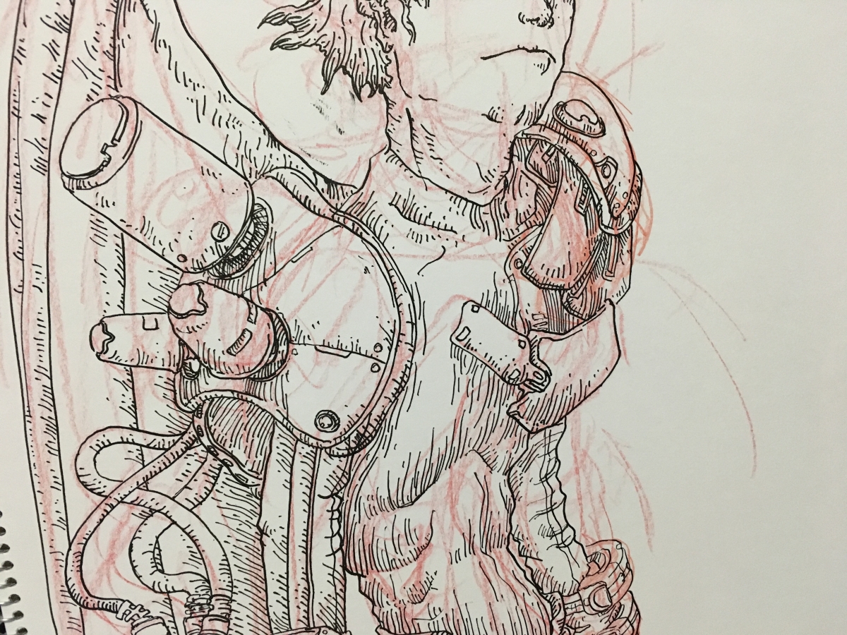 1月20日にライブドローイングのついでに展示もすることになったが展示するものがないのでとりあえず10枚描いた。本人の必死さが微塵も伝わらない線画なので辛いばかりだがまとめて見るとこれはスケッチだな。これからもう一捻りはないと絵にならないがまぁ描いたよ。さて、どうやって展示しようか。