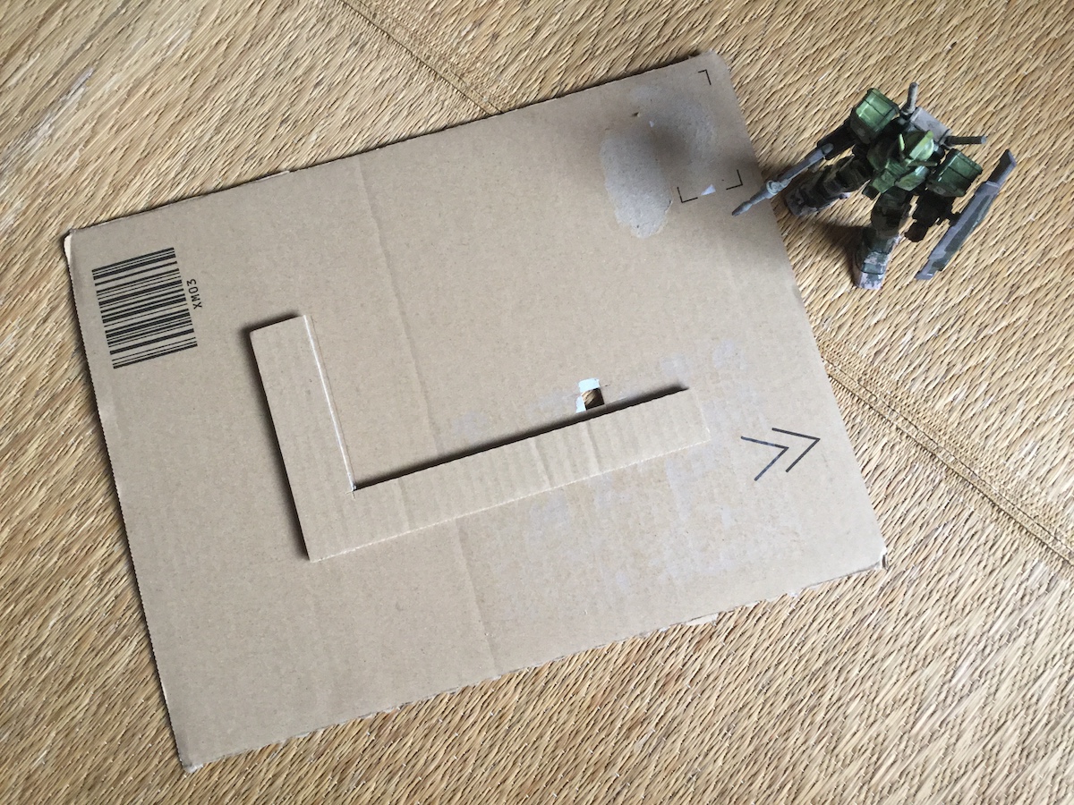 電子メモ帳のスケッチを撮影すると必ず反射するので、それを防止するための板を作成し。とりあえず段ボール製。カメラの窓を開けてスマホを固定する部品を切り出して今回は紙用のノリで接着。今のところ使い勝手は良い。