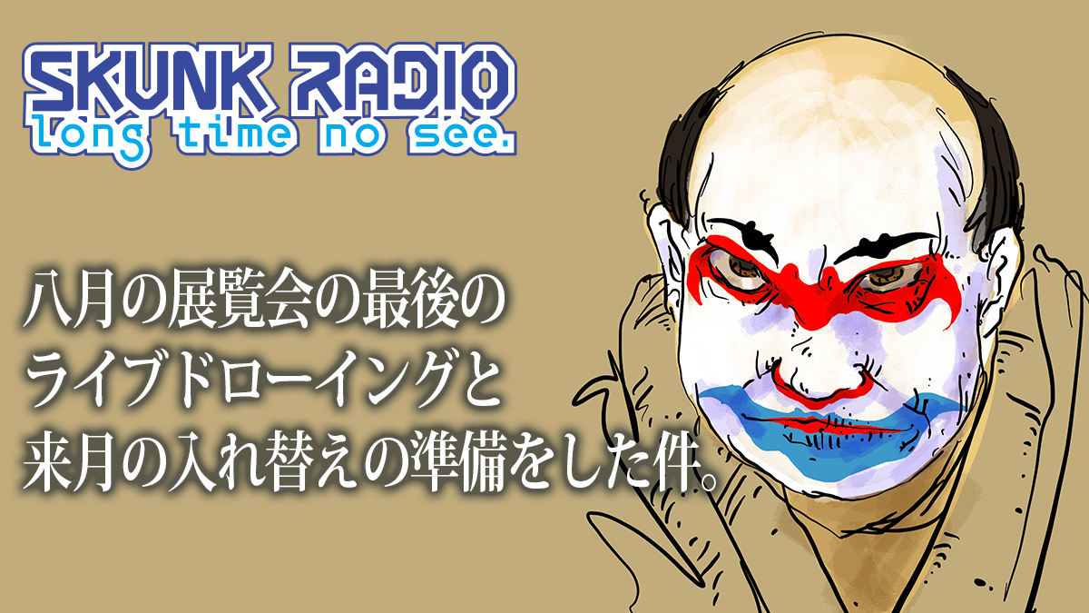 日記 ライブドローイングと来月の入れ替えの準備をした件。 投稿者: murbo 投稿日: 2025/09/032025/09/03 八月の展覧会の最後のライブドローイングと来月の入れ替えの準備をした件。 250831 skunk radio 関連記事: サムネイルを作る話。 展覧会の会場を予約してきた件。 展覧会会場を募集中の件。