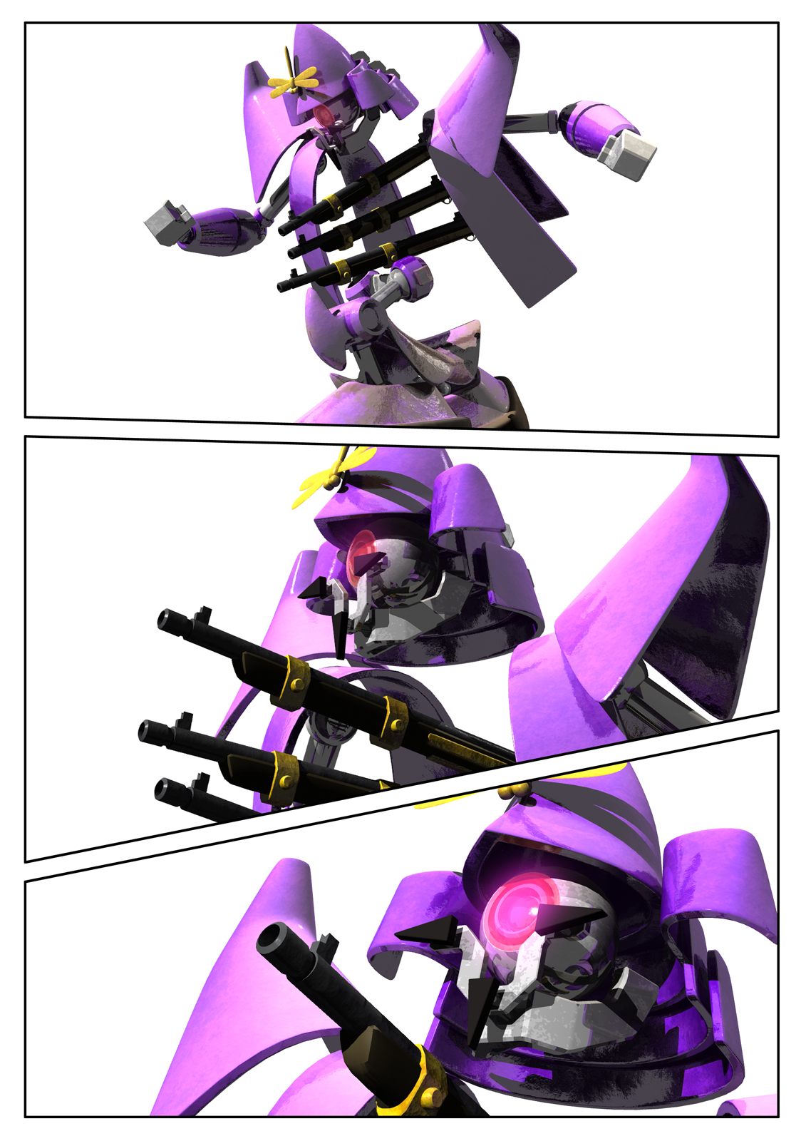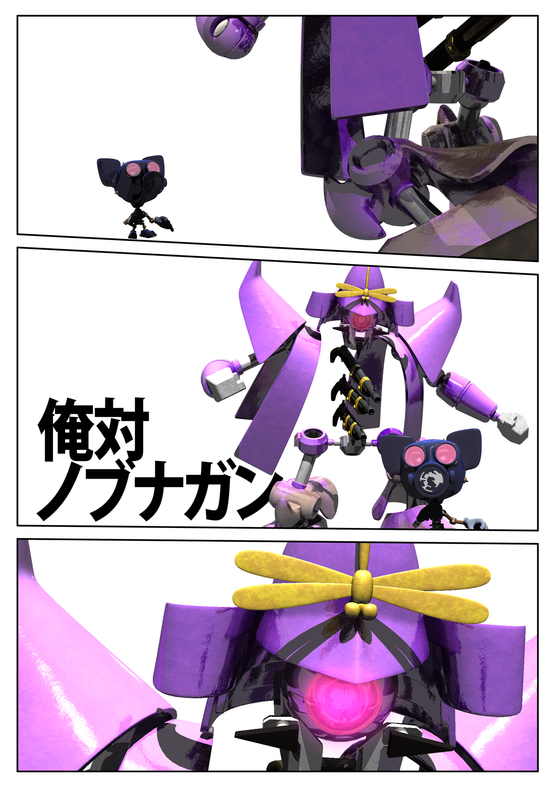 ノブナガンは織田信長をモチーフにした落書きをしていて、それをロボット風にしたものだ。そのときは顔は似顔絵だったがモデリングがめんどくさかったので髭だけ織田信長。このロボットシリーズはテクスチャは貼らないことにしているのです。