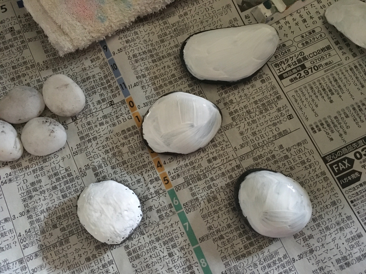 ただもう一つ描き始めるだけです。とりあえずジェッソ塗ります。毎回石のときはジェッソを下地にするととても描きやすいのです。