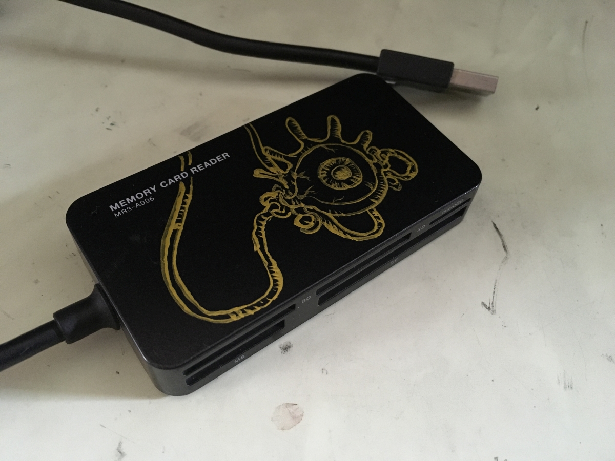 随分昔から使っているマルチメディアカードリーダーに描いた。