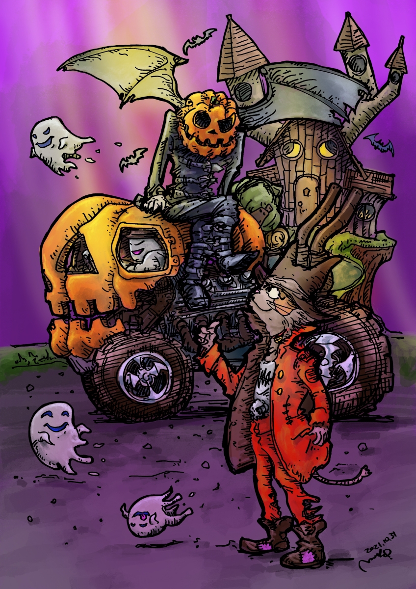 Picture 2021年のハロウィンのイラスト彩色。 投稿者: murbo 投稿日: 2021/11/052022/10/13 A2サイズに描いたドローイングにProcreateで彩色。 2021年のハロウィン。 関連記事: PUNPKIN CAR 220921 2021年のハロウィン。 jackbat 230906