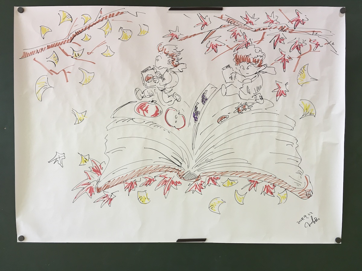 毎月やっている児童センターでのライブドローイング。短時間で描くことにしているものの荒いなあ。抽選で一組に似顔絵も描いています。今回から抽選に自作のイラストカードを使っています。