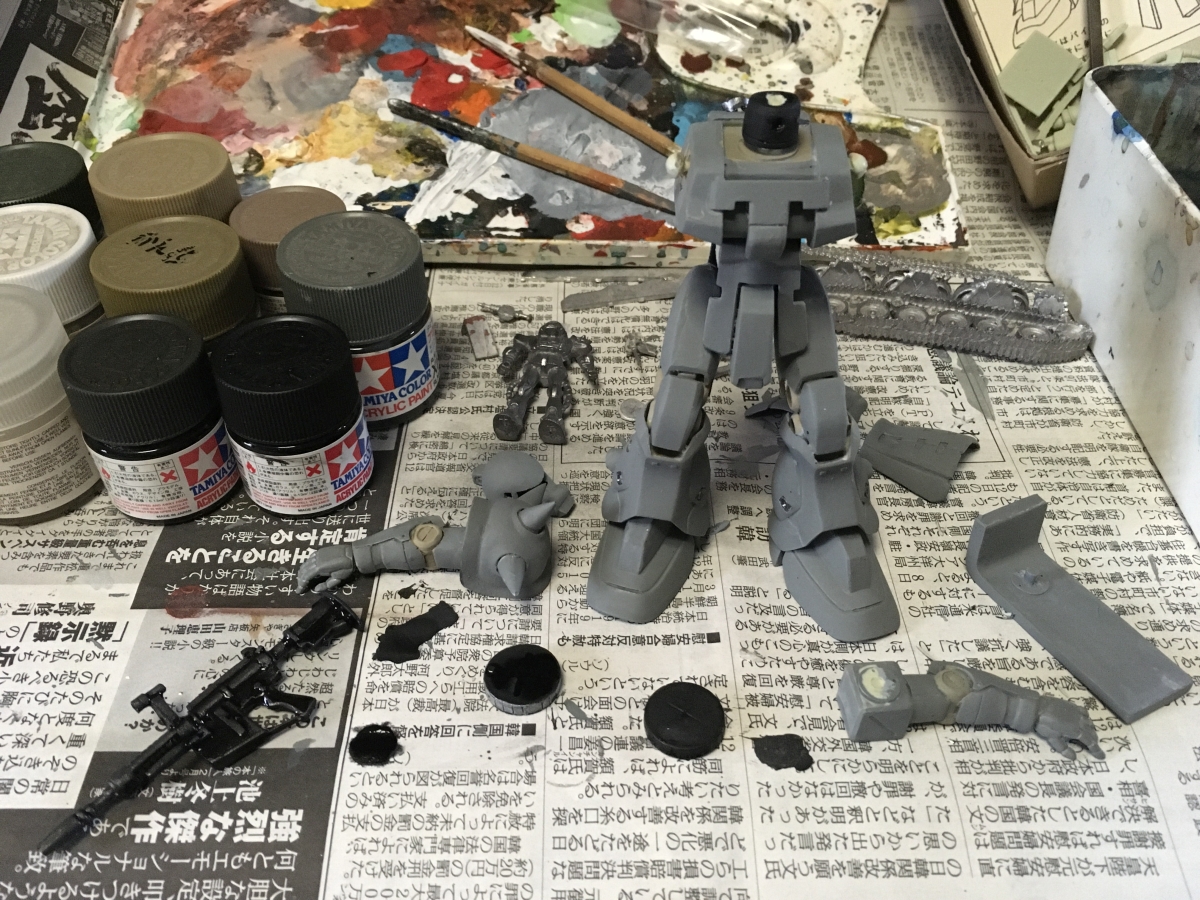 プラモ 昔のガレキのザクを塗ってる。2 投稿者: murbo 投稿日: 2020/09/072021/04/30 なんとなくじゃないけどやる気が出なくて、ザクを塗っていた。毎度どうしようか迷いながらの塗装。マシンガンはガンメタルで塗ってからラメ成分が強すぎて嫌だったのでつや消し黒で塗りつぶした。分割はこの程度で更に塗装を進める。 関連記事: 昔のガレキのザクが出来た。 昔のガレキのザクが出来た。の続き 昔のガレキのザク塗ってる。