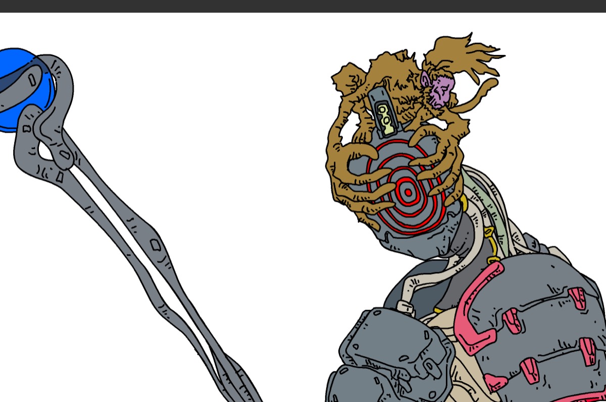 朝から集中して描く、とはいかないので、リズムが掴めずぼんやりしている時間もあってやっと一枚素材ができた。背景はまだまだ。