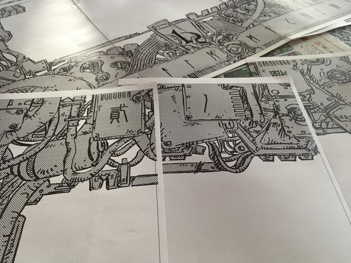 額のサイズ問題があり、絵はA2だけど、たぶんA2で描くのはこれが最後なので、額を買うのが面倒なのでA1との隙間を埋めるものを作っています。そしてこれを作るほうが面倒だったのでやはり今回限りの手法ですね。2枚ほど失敗したので完成は明日に持ち越しです。