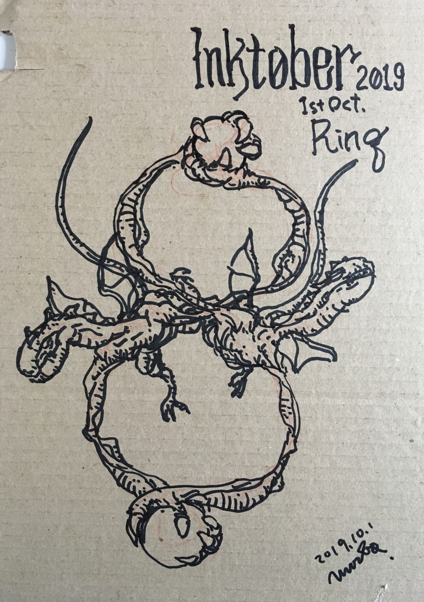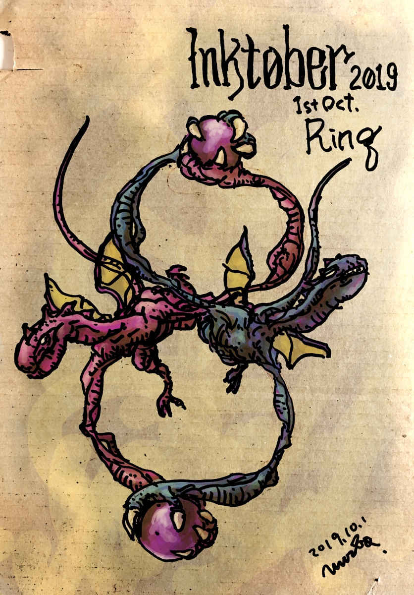 今回は1のリング。ドローイングだけで一応完結で、おまけで塗っている。