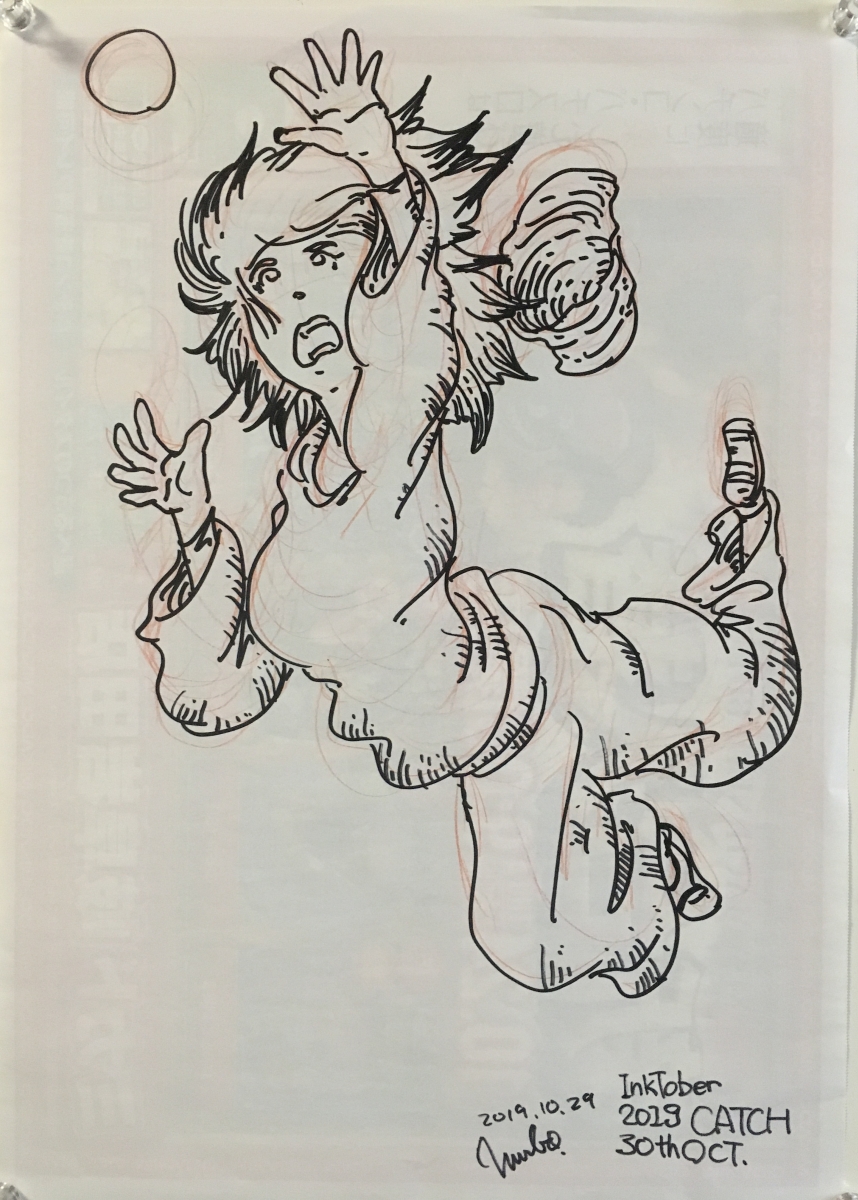 inktober2019 inktober 30 CATCH 投稿者: murbo 投稿日: 2019/10/292022/06/05 正確にはキャッチしようとしているところ。30日目のinktober 2019のお題はCATCH。キャッチを検索するとボールをとるところばかりが登場したのでボールをとるところにした。人は地面に立っていればいいのにボールと一緒に飛んでいる。 紙に油性ペン 関連記事: inktober2019改題30。 inktober2019改題3。 inktober2019改題8。