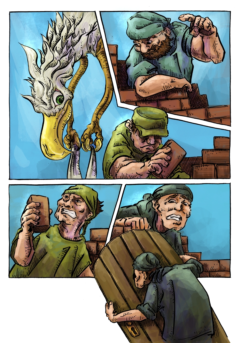 紙に筆と万年筆のドローイングにProcreateで彩色。
