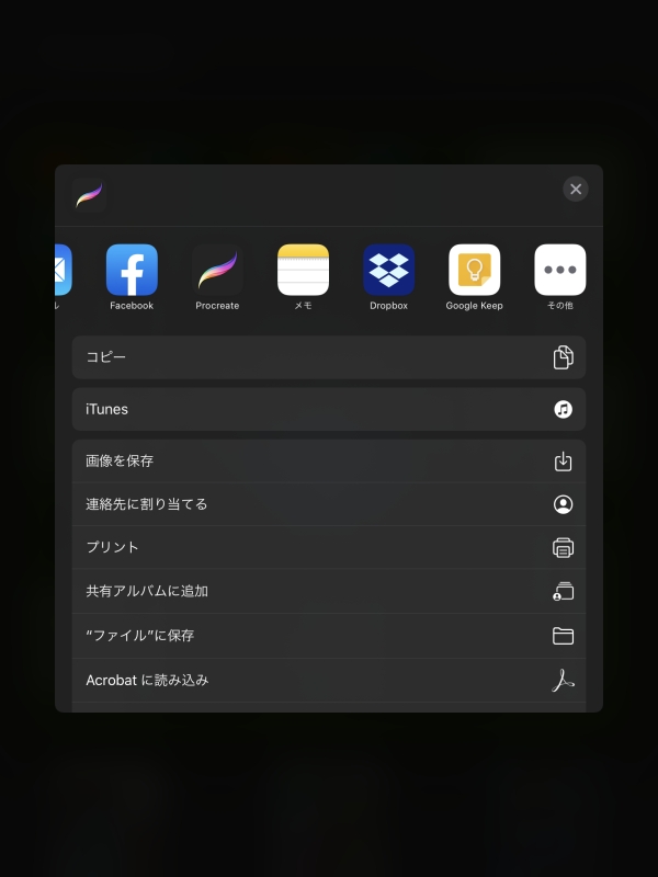 そして初期設定を失ったり、アップデートの繰り返しののち、ProcreateからDropBoxへjpegで送ろうとしたら、直接送れなくて一旦写真へ送ってDropBoxへ送っている。Procreateは機能の半分以下しか使っていないがそれでも大変使いでのあるアプリで気に入っているが、描いた絵を書き出す工程に毎度ムラがあって困る。DropBoxへ送るのが良くないのか、用意されている方法が毎回違ったり、あるのにエラーで使えないとか納得行かない。例えばGoogle Driveに送り先を変更したら解決するのか。