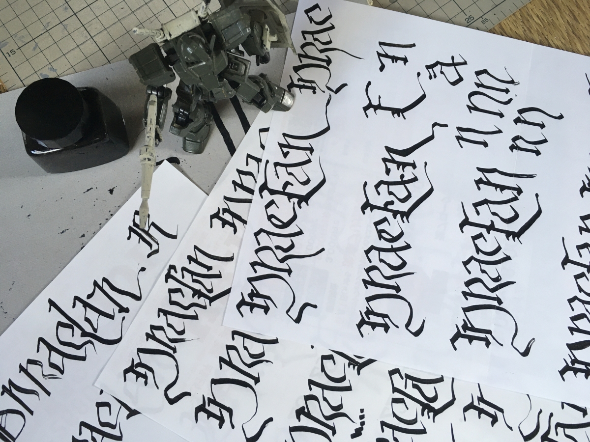 パソコンやタブレットのペイントツールでカリグラフィは書けるのにカリグラフィは専用のペンでなければ書けないと思いこんでしまって、ペン先を買ったのでわざわざペンで書いている。