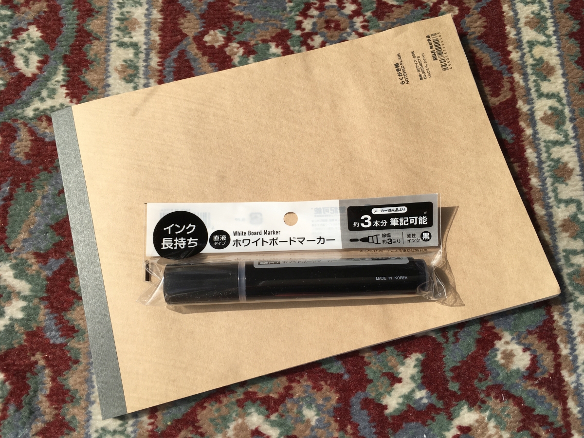 画材は前回の円徳寺で描いたホワイトボードマーカー。セリアで売っていたもの。大体同じサイズで同じようなものを描いて三枚目か。インクの持ちはこれくらいなのかよく持つのか、