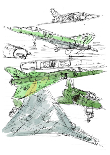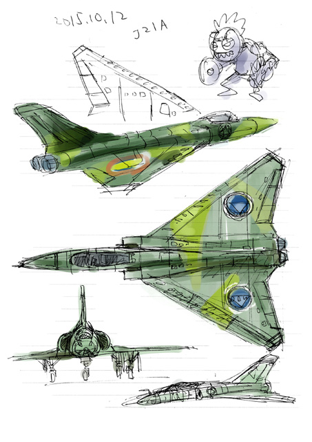J21・架空戦闘機 J21aブリクスト 投稿者: murbo 投稿日: 2015/10/152017/01/13 blixt(ブリクスト)はスウェーデン語で稲妻の意味。架空戦闘機J21a BLIXTは適当に考案中。これは前期型という設定。 寝ぼけて色を塗っていたので変なところに赤い丸があったり、途中で塗るのを止めていたりする。 形が身につくまで適当に書き殴り注。実際は仕事でもないのに公開できない絵があるジレンマを解消するために描くモチーフとしてブリクストを選んでいる。 関連記事: j21a making J21aとbまたはc making making of J21b