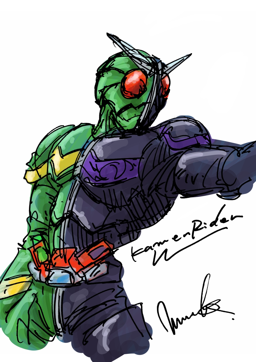 Picture kamen rider W 投稿者: murbo 投稿日: 2020/05/022020/05/03 DECADEを開発した日本企業は未確認生物の能力などをデータ化し対未確認生物用強化装甲服の能力として活用することに成功。その実証実験機として開発されたのがW(ダブル)。同時に2つの能力を構成して利用する事ができる。設定はクウガから無理やりつなげるための適当です。 紙に油性ペンのドローイングにProcreateで彩色。 関連記事: kamen rider OOO kamen rider kabuto 練習20052201