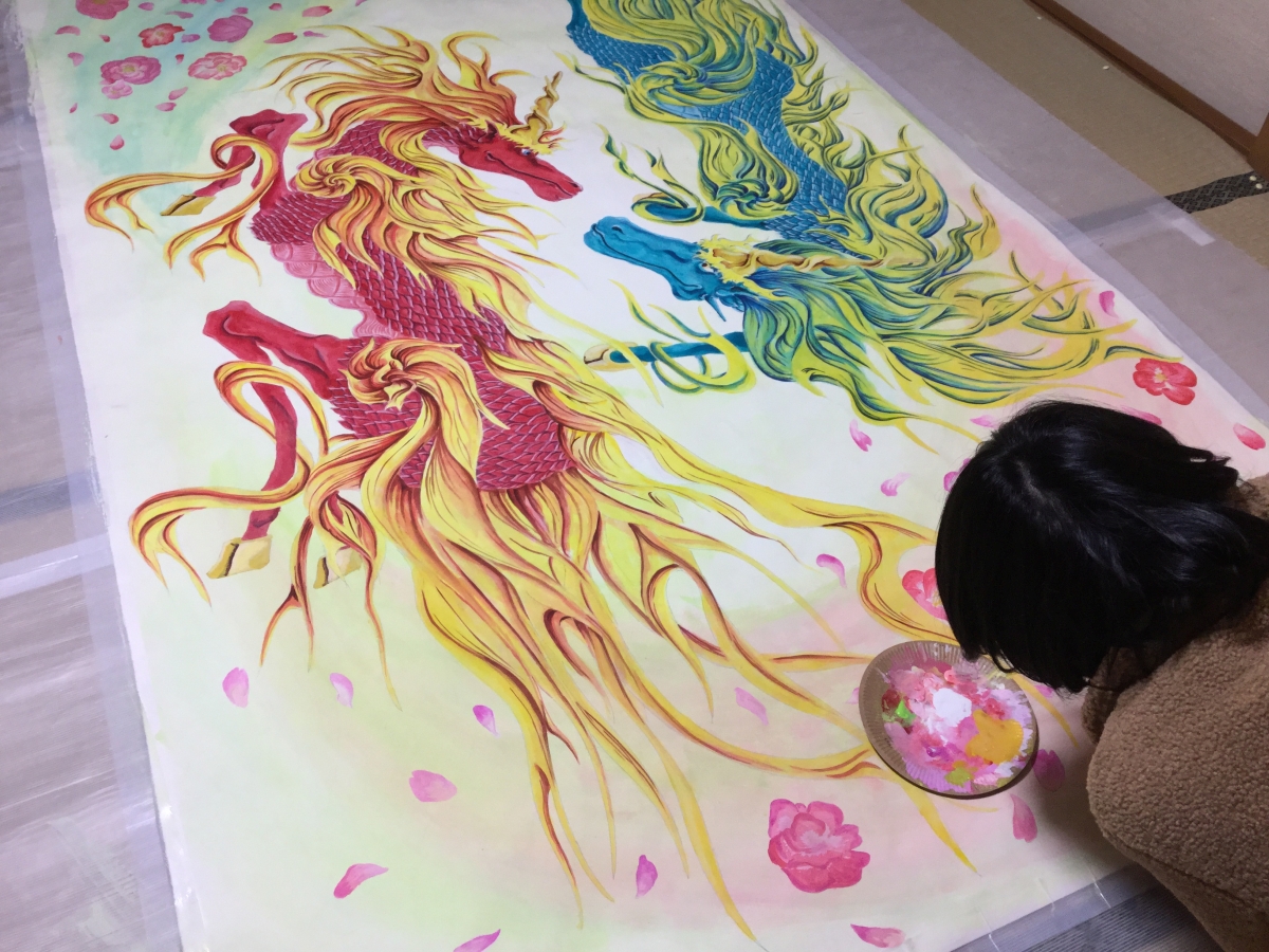 まあぼん 麒麟(大)制作211220 投稿者: murbo 投稿日: 2021/12/262022/06/06 そろそろ制作も佳境に入ってきました。佳境ゆえにやってることがほぼ変わらず、花についてはバランスを確認しながら追加しています。 やっと絵を立ち上げられるようになったので立てて確認します。 向こう側の脚を忘れているので次回に描き足します。 関連記事: 麒麟制作211109 麒麟(大)制作初日211127 麒麟(大)制作211208