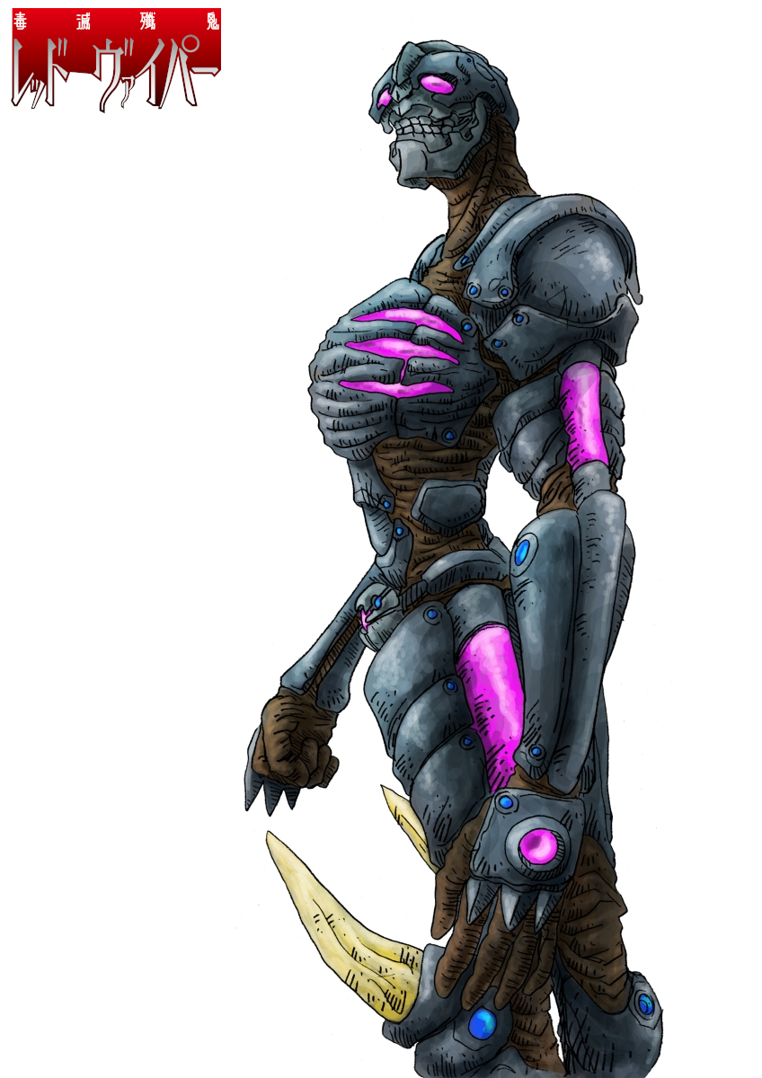 毒滅殲鬼レッドヴァイパー LEDVIPER 181126 投稿者: murbo 投稿日: 2018/11/262022/06/23 レッドヴァイパーを記憶スケッチ。はしていなくて、結構以前描いた絵を見ている。腕と脚の謎のパイプを描きたい意識が強すぎて妙なディフォルメが強くなっている。怪人だけ描いていると主人公のはずのレッドヴァイパーを忘れてしまうので備忘録みたいなものです。 シャープペン0.9mmのドローイングにprocreate(iOSアプリ)で着色。 関連記事: レッドヴァイパーを記憶スケッチ LEDVIPER 181008 LEDVIPER 180112