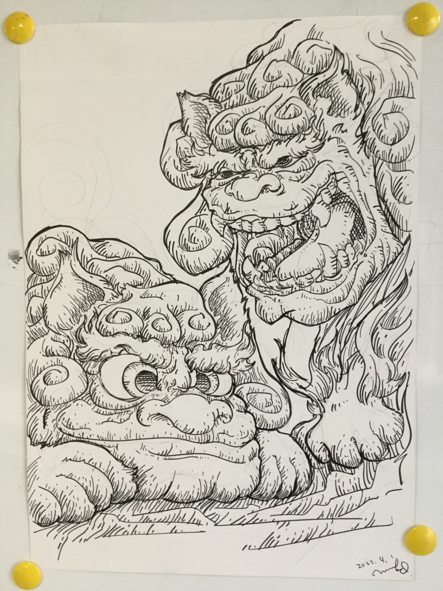 まあぼん、(てん)会期中のライブドローイング、一枚目。