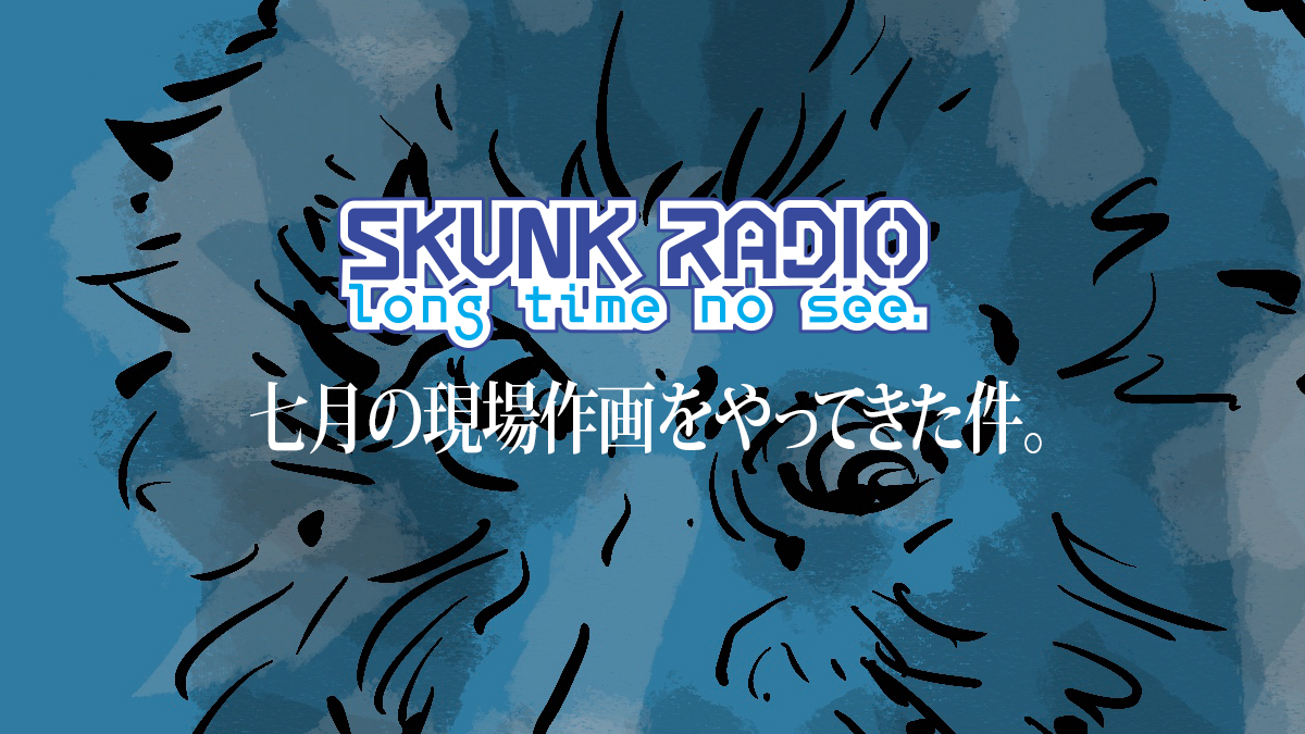 日記 七月の現場作画をやってきた件。 投稿者: murbo 投稿日: 2024/08/012024/08/01 七月の現場作画をやってきた件。240728 SKUNK RADIO long time no see. 関連記事: 看板描きの準備と貞照寺。 ライブのお手伝いをしました。221127 年末はホットミルクを飲むことになってしまっている。