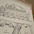 下書きをいつもより多めに描いています。絵が複雑だからです。いきなり描くには訳がわからないです。