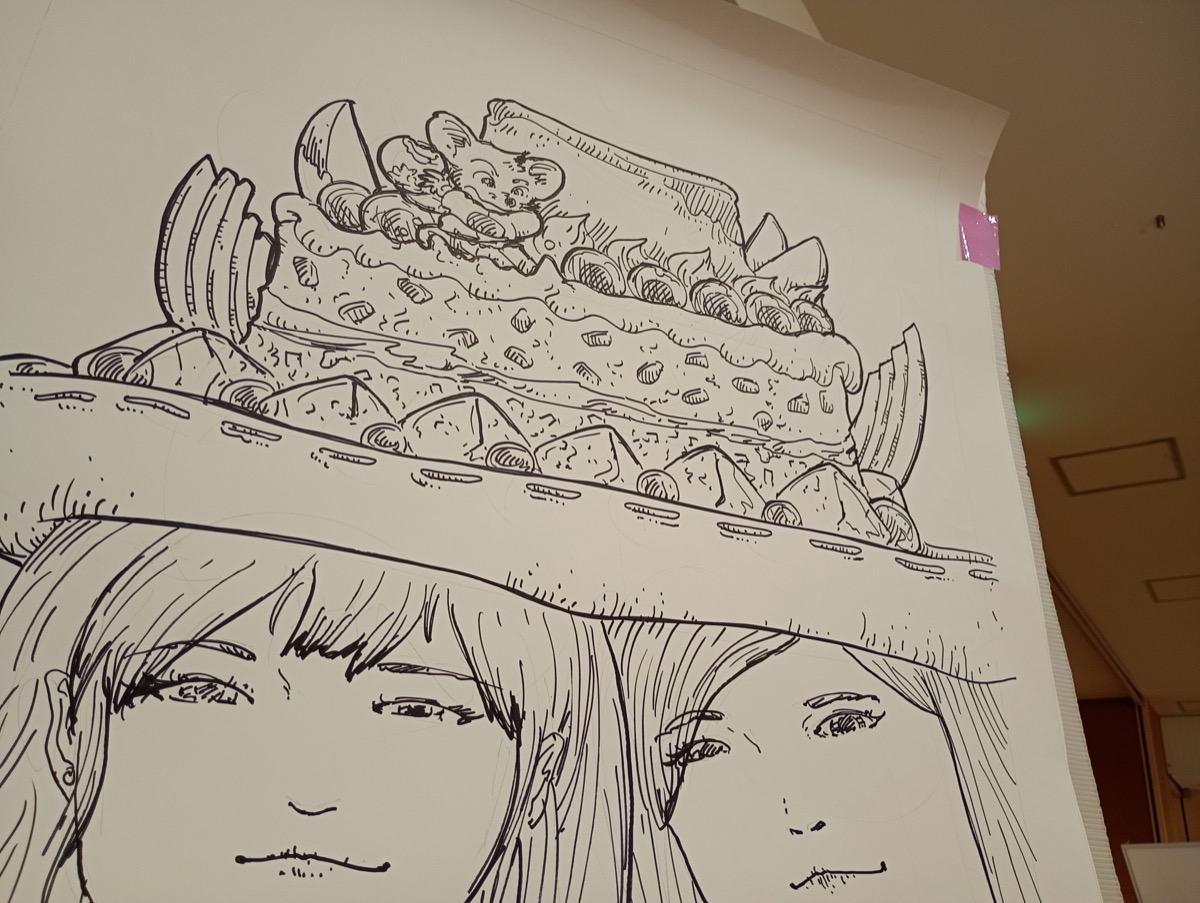 帽子を描きます。一枚目のネズミが唐突だったので、また登場させました。