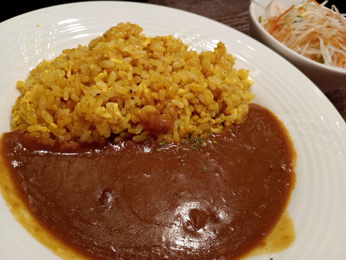 白いご飯にカレーが良かったが、ピラフしかないとのことでピラフカレーを注文しました。