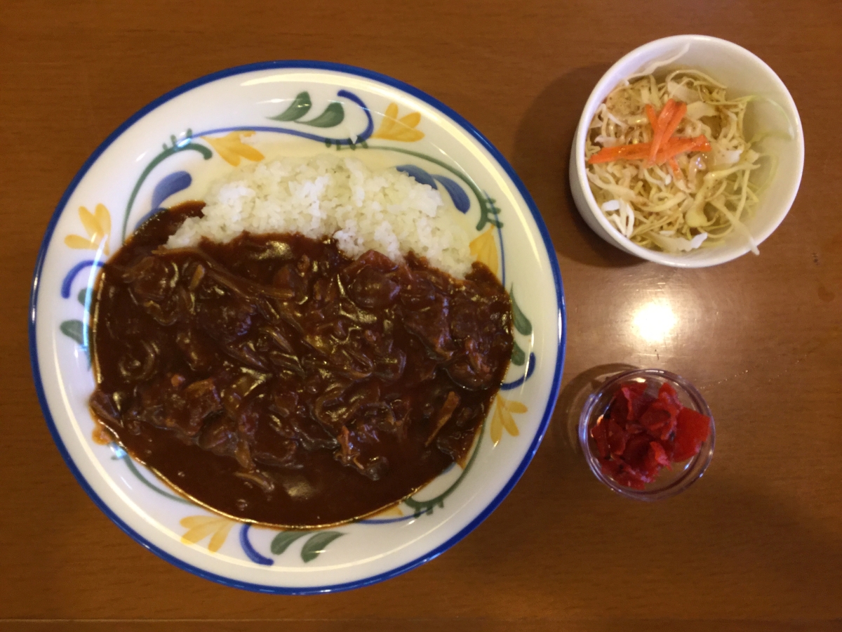 味は深めのコクのある甘めの美味しさで大人も子どもも楽しめる。美味しい。美味しいけど今回は料理の周辺の話。グルメの人たちは美味しい料理を紹介したり批評したりしていますよね。多分そうだと思っています。その美味しいは個人的な視点の評価だったり、売れるかどうかはなんて言ったらいいんだ、営業的な評価だったりするのです。営業の視点からはともかく、個人的な評価は自身の年齢とか現状の生活環境とか単なる好みとかに左右されるのです。あーだこーたうんちくいってもあくまでも自分の視点から見たものなのです。これに左右されてしまうとそのグルメの人たちの年齢や生活環境の人にリーチされるものは出来てもそれ以外には届きづらいのです。と思ったのは、このハヤシライスと若干甘めな味とカレーライスのあまり辛くないこと。あ、甘めな味って言ってるけど、このハヤシライスはめちゃめちゃ美味いからな。デミグラスのちょっとした苦味みたいなものあって、繰り返すが子どもが親と一緒のものが食べたいとか少し背伸びしたものを選びたいときに最適だ。その視点がないんじゃないかと思った。子どもなんかなんでもいいわけはないんだ。親に連れて行ったもらう飲食店は子どもにとって食の原体験になることもあるんだ。今ならファミレスもそうだろう。しかし、学生や社会人になってかつて子供の頃に食べた店の料理が気になったとき、どんな料理だったら嬉しいだろうか。ファミレスの痩せた味でいいのだろうか、地元の小さな料理店で業務用のカレーをさっと掛けたカレーライスでいいのだろうか。それも親といった思い出なら何でもいいと言われればそうかも知れない。それでも僕は自分が子供の頃に美味しいと食べた料理が、きちんと考えて作られて、今も美味しいと感じられるもののほうが良くないかな。