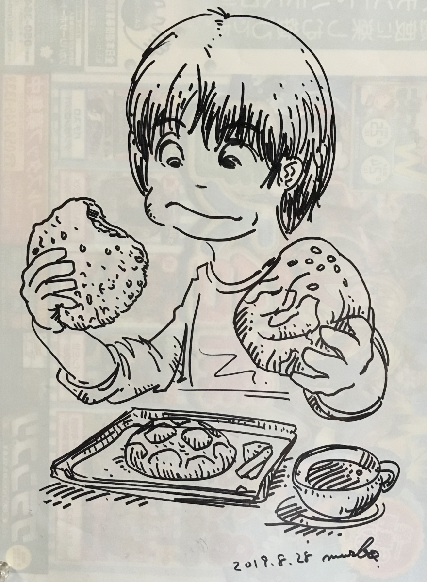 Picture lunch time drowing 190828 投稿者: murbo 投稿日: 2019/08/282019/08/28 カレーパン、メロンパン、サラダパン的なパン。 紙に油性ペン。 関連記事: lunch time drowing 190809 lunch time drowing 190814 lunch time drowing 190819