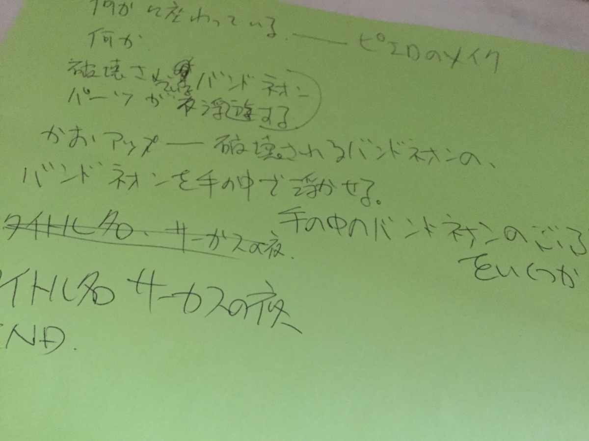 循環するビデオ#4 making of notte del circo 01 投稿者: murbo 投稿日: 2021/01/262021/01/29 字コンテ。ここから作ります。絵も音楽ももうあるんだけどね。絵が足りないのでこれから描きます。 関連記事: making of notte del circo 02 making of notte del circo 03 making of notte del circo 05