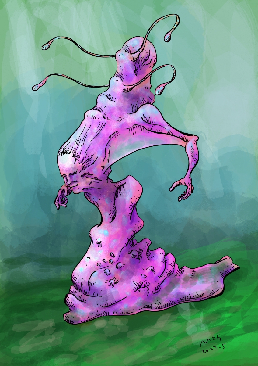 Picture MEGを記憶スケッチ。 投稿者: murbo 投稿日: 2022/05/232022/05/23 MEGの記憶スケッチ。だいぶ違うと思う。元ネタは忘れた。 紙に筆とボールペンでドローイング。Procreateで彩色。 関連記事: バウウの記憶スケッチ。 マーメイムの記憶スケッチ。 ヒムラーの記憶スケッチ。