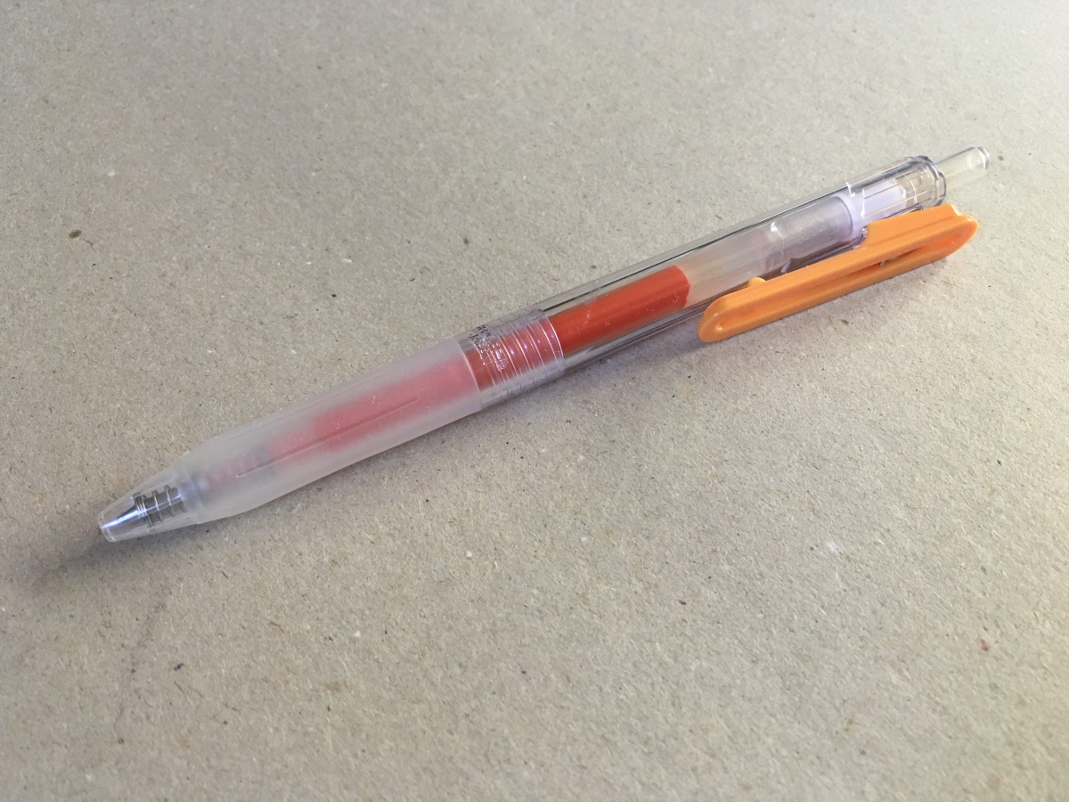 無印良品のサラサラ描けるゲルボールペンノック式はサラサクリップのOEMのようです。
