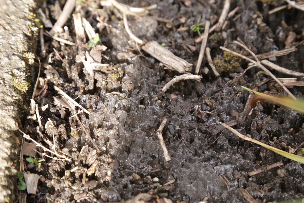 自宅の畑が霜柱だらけになっていた。酷い底冷えだ。