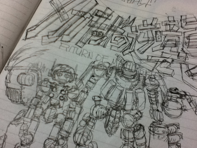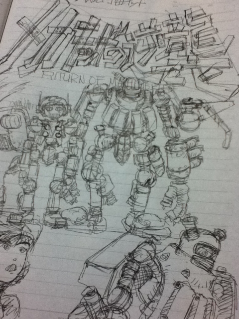 宇宙キッド・自主制作・05メカキッドの逆襲 次はこれ作りまーす。 投稿者: murbo 投稿日: 2016/01/282016/10/14 何だか分かりませんけど。 ロゴタイプとメカキャラクター二つ。戦車よりはモチベーションは上がるが面倒だなあ。変形することにしてるのに変形の仕方まで考えていなかったよ。 ボールペンのインクがダダ漏れで厄介でした。貰ったボールペンなので贅沢は言えない。油性より水性インクが描き易い。油性はどうしてもインク漏れが発生してしまうので、そもそも絵が汚れるのだ。まだjetstreamは使ってないのでこれに期待したい。 関連記事: アイアンバイソンの途中経過 電撃メカキッド making of dengeki machine kid