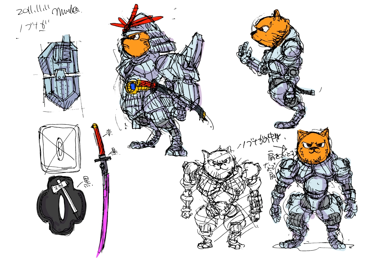 鎧を外した中身を考えていなかったので考えた。顔だけでもあまり犬には見えないな。頑張ってるんだけど。鎧を外しても機械なのでロボット的な要素は盛り込んであり、顔だけ生物的なのは表情のつけやすさから作りての都合なのだ。