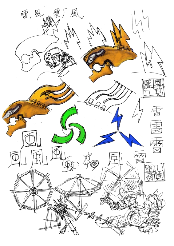 古式ゆかしく、相当ありきたりに阿吽のごとく二体にすることにした。風と雷。