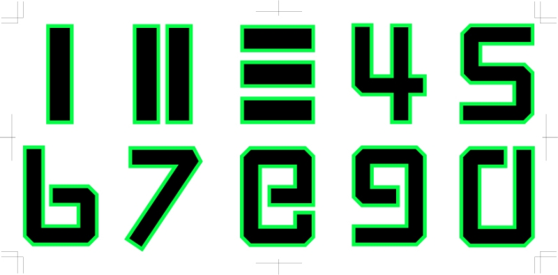 今回は一筆書き出来て目視で確認しやすい形を意識して8が相当に苦しいな。余裕があればアルファベットも作るでしょう。(といって三書体ほど作りかけの在庫がある)