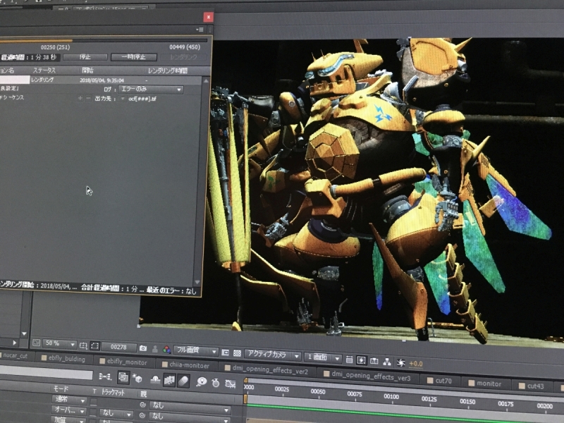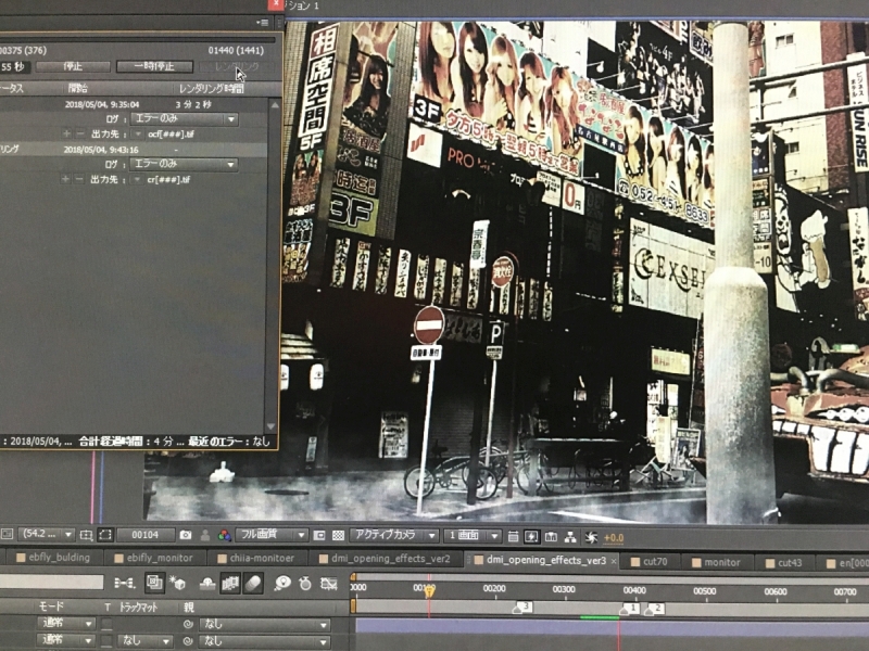 レンダリングをモニターしているといくらなんでも暗すぎるカットがあり、修正して再レンダリング。