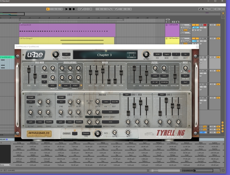 そして今回使用したソフトシンセはSFのノリを活用しようとTYRELL Nexus 6 V3 Synthというバーチャルアナログシンセサイザーです。メーカーはドイツのu-heです。