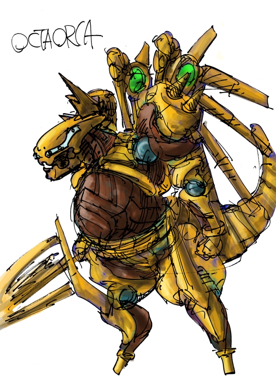 OCTA ORCA OCTA ORCA sketch 投稿者: murbo 投稿日: 2017/12/182018/01/11 形をだんだん忘れそうなので一旦思ってる形をかき出す。 若干思ってた部分と以前描いた部分の整合性が取れていなかったので、それの帳尻を合わせることも含めて。 しっぽの存在感が希薄だなあ、結構しっぽは気にしてるんだけどな。 関連記事: OCTA ORCA 2 出てくるもののスケッチか覚書き ロボットの顔面を考えてた